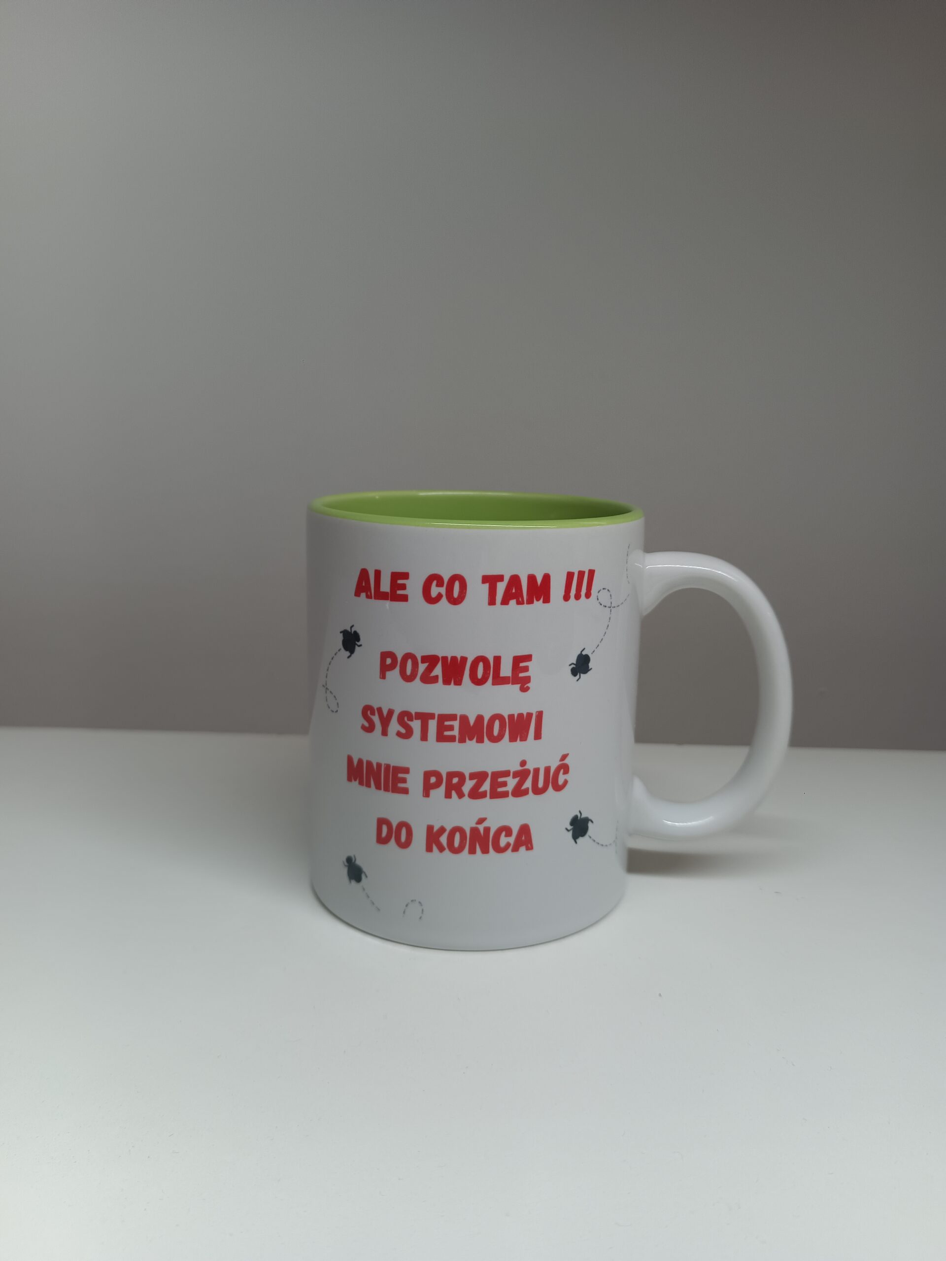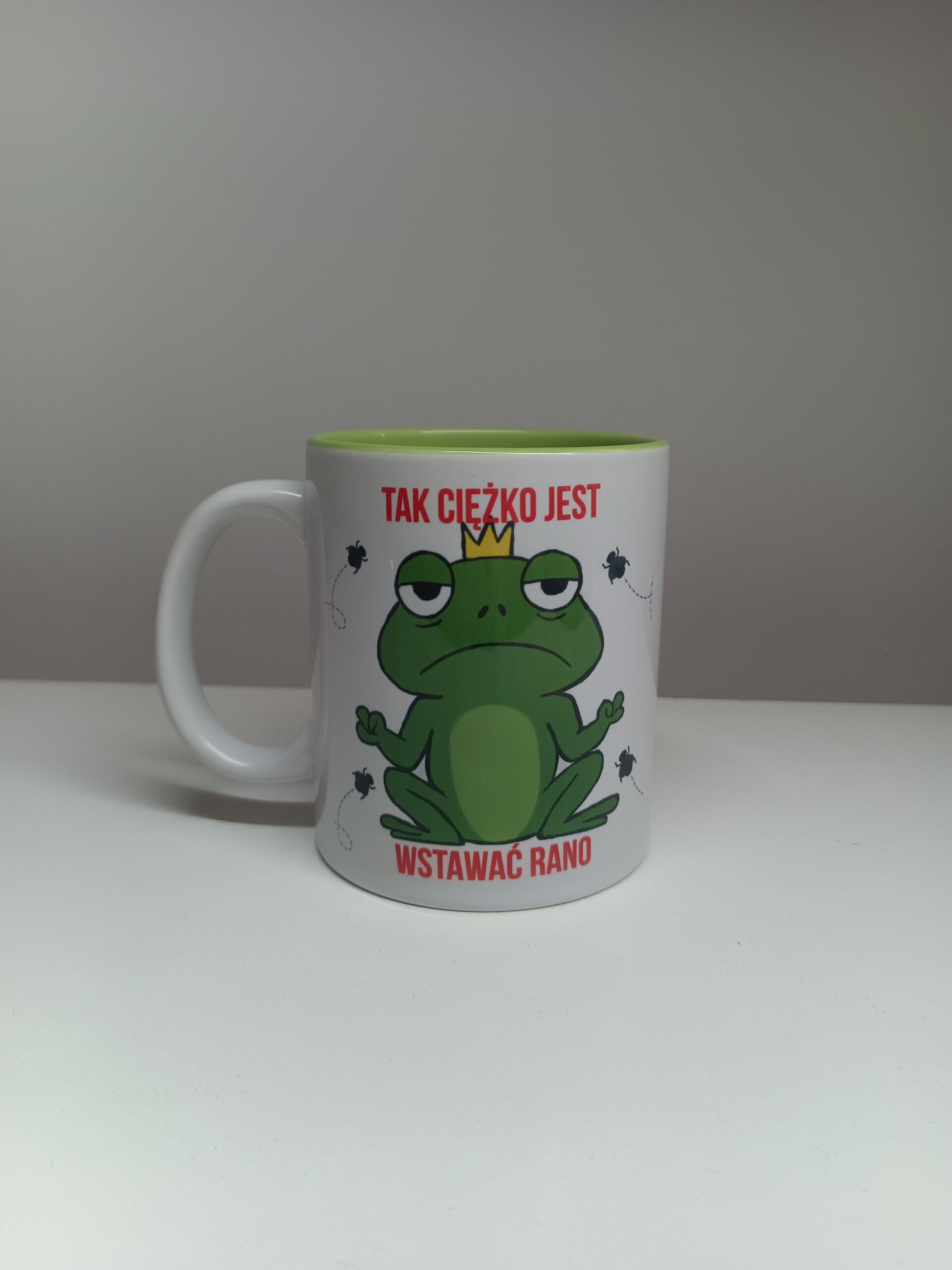 Znasz ten stan, kiedy budzik dzwoni, a Ty czujesz się jak przeżuta przez system żaba? Ten kubek dokładnie to rozumie.